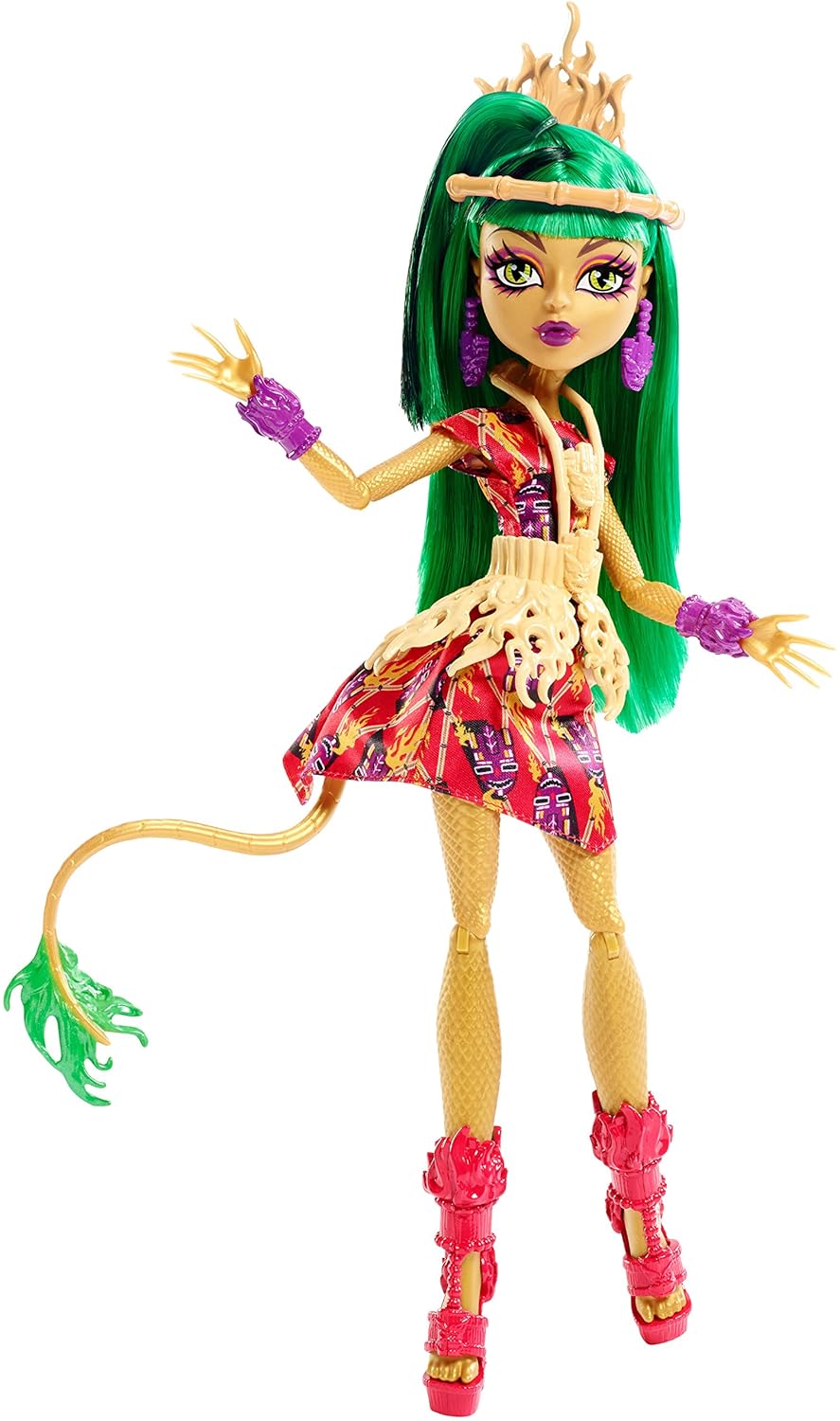 Nejsem moc velký fanoušek Spectry a ani tahle se mi příliš nelíbí. Pro Spectru jsou typické fialové vlasy, doplňky, oblečení, atd. Růžová vypadá možná trochu lépe, ale není to Spectřin styl. Kdyby alespoň vše ladilo.Jenže: Modré oční stíny se tlučou s vínovo-růžovými vlasy a žlutou čelenkou se světle růžovou květinou. Příliš žluté šaty se na panenku nehodí. Celý outfit obsahuje moc růžové a málo žluté.(Pokud nepočítáme i náramky a ty příšerně velké náušnice.)